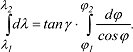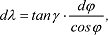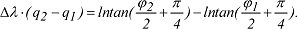 Der Ausdruck dφ/cosφ ist das Differential der isometrischen Breite. Er wird mit dem Symbol dq bezeichnet. Das Einsetzen in die vorherige Gleichung und Integration ergibt: