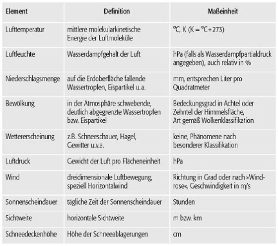 meteorologische Elemente (Tab): Überblick meteorologischer Elemente. meteorologische Elemente (Tab):
