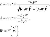 = ∇W kann ein Zusammenhang zwischen den natürlichen Koordinaten (φ,λ,W) und den rechtwinklig kartesischen Koordinaten (