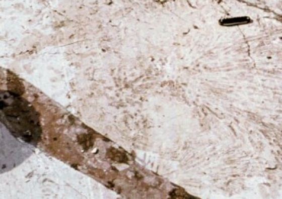 neptunische Spalten: mit konglomeratisch ausgebildeten jurassischen Knollenkalken ("Scheck") gefüllte neptunische Spalte im Rhät-Riff von Adnet. neptunische Spalten: