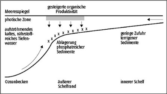 Phosphatlagerstätten: Modell zur Entstehung mariner Phosphorite. Phosphatlagerstätten: