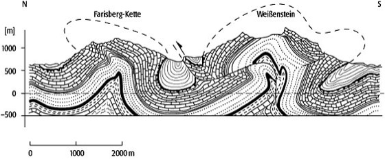 Pilzfalte: Pilzfalten (Farisberg- und Weißenstein-Antiklinale) und Beutelmulde im Schweizer Faltenjura. Pilzfalte: