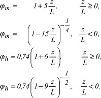 mit τ =turbulente Schubspannung und H=turbulenter Wärmefluß. Die sog. Profilfunktionen φm und φh sind aus zahlreichen Feldmessungen bestimmt worden:
