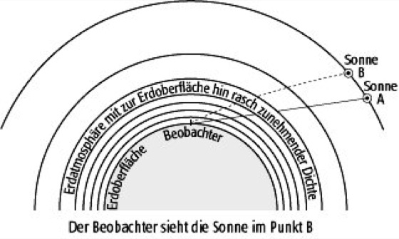 Refraktion 2 : terrestrische Refraktion und damit verbundene Erhöhung des Horizontes Refraktion 2