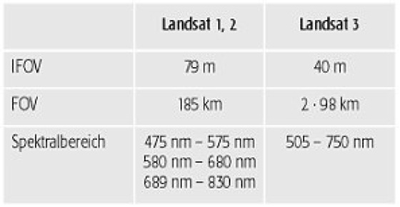 Return Beam Vidicon (Tab.): Daten von Landsat 1, 2 und 3.Return Beam Vidicon (Tab.): Daten von Landsat 1, 2 und 3.