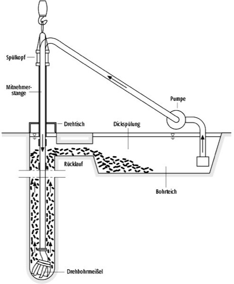 Rotary-Bohrverfahren: schematische Darstellung. Rotary-Bohrverfahren:
