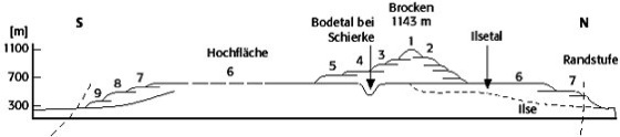 Rumpftreppe: Rumpftreppenbildung (1-9) am Beispiel des Harzes. Rumpftreppe: