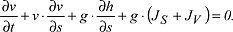 Dabei ist v die Fließgeschwindigkeit, g die Erdbeschleunigung, h die Wasserhöhe, Js das Sohlgefälle und Jv das Reibungsgefälle. Die Glieder (∂v/∂t) und v·(∂v/∂s) beschreiben die lokale und die konvektive Beschleunigung (Trägheitsglieder), der Term g·(∂h/∂s) das Druckglied. Diese Gleichungen bilden die Grundlagen für die hydraulischen Berechnungsverfahren des Hochwasserwellenablaufs in Flüssen (Floodrouting-Verfahren). [HJL]