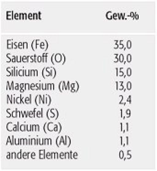 Sauerstoff (Tab.): Elementhäufigkeit der gesamten Erde. Sauerstoff (Tab.):