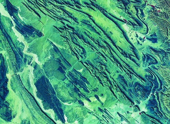 Schichtkammlandschaft: Schichtkammlandschaft im Satellitenbild (Südmarokko). Schichtkammlandschaft: