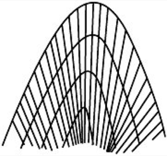 Schieferungsfächer, wird eine Achsenflächenschieferung in einer Antikline (Falte) bereits vor der endgültigen Einengung der Falte angelegt, so wird die ursprünglich parallele Anordnung der Schieferungsflächen symmetrisch zur Faltenachsenfläche aufgefächert. Die einzelnen Flächen divergieren nach oben. Alle Schieferungsflächen sind parallel zur Faltenachse angeordnet ( Abb.).