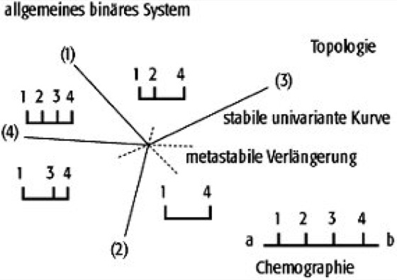 Schreinemakers-Methode: Anordnung der univarianten Reaktionskurven in einem allgemeinen Zweistoffsystem. Schreinemakers-Methode: