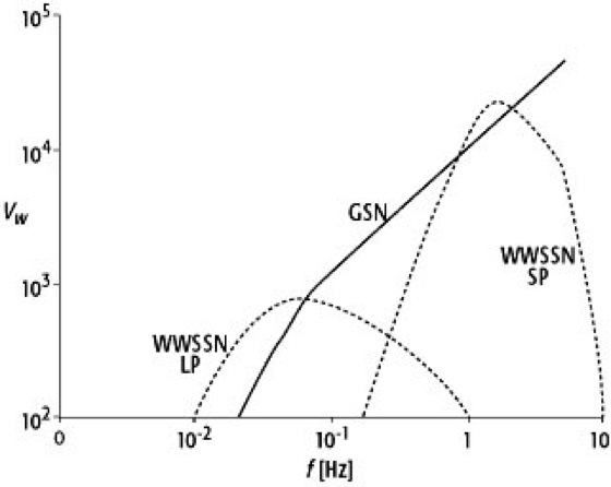 seismographische Netze: Amplitudencharakteristik einer analog registrierenden WWSSN Station und einer modernen GSN Station. seismographische Netze: