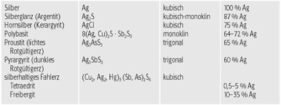 Silberminerale (Tab.): Übersicht über die wichtigsten Silberminerale. Silberminerale (Tab.):
