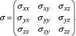 Spannungstensor, beschreibt den Spannungszustand durch einen symmetrischen Tensor zweiter Stufe:
