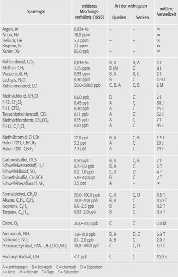 Spurengase (Tab.) : wichtige troposphärische Spurengase. Spurengase (Tab.)