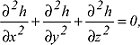 wobei x,y,z=Koordinaten in x-, y- und z-Richtung, h=Standrohrspiegelhöhe und S=Speicherkoeffizient. Die angeführte Gleichung macht deutlich, daß die Zeit keinen Einfluß auf die Grundwasserbewegung bei stationären Strömungsverhältnissen besitzt ( Abb.). [WB]