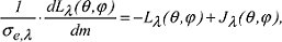 wobei λ=Wellenlänge, θ=Zenitwinkel, φ=Azimutwinkel, m=Masse der absorbierenden und streuenden Moleküle sowie Aerosolpartikel, Lλ(θ,φ)=spektrale Strahldichte in Richtung (θ,φ), σe,λ=Extinktionskoeffizient für die Wellenlänge λ, Jλ(θ,φ)=sogenannte Quellfunktion in Richtung (θ,φ) ist. Im allgemeinen Fall ist die Strahlungsübertragungsgleichung eine komplexe Integro-Differential-Gleichung, denn die Quellfunktion beinhaltet dann die gestreute Strahlung (ein Integral über die gesuchte Strahldichte). Wenn die Streuung vernachlässigt werden kann (z.B. im mittleren Infrarot unter normalen atmosphärischen Bedingungen), vereinfacht sich die Strahlungsübertragungsgleichung beträchtlich; der Extinktionskoeffizient σe,λ kann durch den Absorptionskoeffizient σa,λ und die Quellfunktion kann durch die Plancksche Funktion ersetzt werden. Im sichtbaren Spektralbereich ergibt sich für die direkte Sonnenstrahlung das Bouguer-Lambert-Beersche Gesetz, da die Quellfunktion unter gewissen Randbedingungen vernachlässigt werden kann. [HF]
