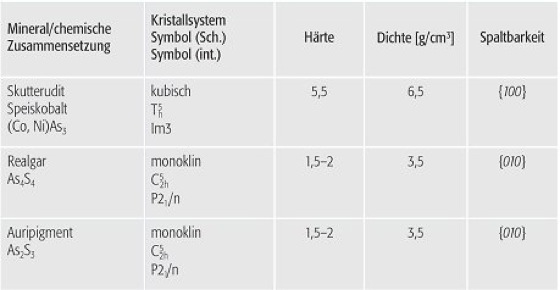 Sulfide, Mineralklasse, zu der die sauerstofffreien Verbindungen von Metallen und Metalloiden mit Schwefel zählen ( Tab.). Darüber hinaus rechnet man zu dieser Klasse auch noch die Selen-, Tellur-, Arsen- und Antimonverbindungen der Metalle sowie eine Reihe von Mineralen, die hinsichtlich ihres chemischen Aufbaues den salzbildenden Verbindungstypen nahestehen und die unter dem mineralogischen Begriff Sulfosalze(Spießglanze) zusammengefaßt werden. Obwohl ca. 40 Elemente Verbindungen mit Schwefel eingehen und ein großer Teil der Sulfide als wirtschaftlich wichtige Minerale auf zahlreichen Lagerstätten metallischer Rohstoffe auftreten, ist ihre Beteiligung am Gesamtaufbau der Erdkruste mit 0,15% relativ gering. Außer den Erzen von Eisen, Mangan, Zink, Aluminium und Uran, die in der Klasse der Oxide und Hydroxide auftreten, und den Elementen finden sich unter den Sulfiden die meisten Erzminerale. Die zahlreichen alten deutschen Namen der Sulfide, von denen es oft mehrere Synonyme gibt, lassen sich zu einem großen Teil auf den mittelalterlichen Bergbau zurückführen. Daher stammen auch die Endsilben „kies”, „glanz” und „blende”, die charakteristische Eigenschaften der Sulfide ausdrücken und ihre Erkennung und Bestimmung in vielen Fällen erleichtern. Die Kiesezeigen einen ausgesprochen metallischen Glanz, lichte Farbe, schwärzlichen Strich und eine meist hohe Härte nach Mohs von 5 bis 6. Beispiele sind Kupferkies, Silberkies und Schwefelkies. Durch ein ebenfalls deutlich metallisches Aussehen zeichnen sich die Glanze aus, jedoch haben sie meist graue bis dunkle Farben, einen schwärzlichen Strich, eine geringe Mohssche Härte von 2-3 und eine gute Spaltbarkeit. Beispiele sind Silberglanz, Bleiglanz und Kupferglanz. Einen halbmetallischen Glanz zeigen die Blenden, sie sind in dünnen Schichten durchsichtig und zeigen meist eine farbige Strichfarbe. Sie zeichnen sich durch eine gute Spaltbarkeit, überwiegend geringe Härte und meist komplizierte Zusammensetzung aus. Beispiele sind Zinkblende (Sphalerit) und Schalenblende. Ähnlich wie die Blenden verhalten sich auch die Gültige, wie z.B. das Rotgültigerz. Fahle haben ein metallisches Aussehen, dunkle bis graue Farben, einen schwarzen Strich und geringe Härte. Sie sind meist spröde und nicht spaltbar. Beispiele sind vor allem die Fahlerze.