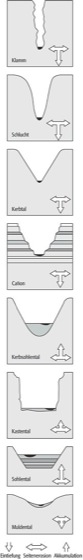 Talformen 1: schematische Darstellung verschiedener Talformen. Talformen 1: