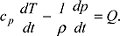 Dabei bedeuten: T=Lufttemperatur, P=Luftdruck, ρ=Luftdichte, cp=spezifische Wärme bei konstantem Druck. Das Symbol Q umfaßt die einem Luftvolumen zu- oder abgeführte Wärme in Form von Wärmeleitung, lang- und kurzwelliger Strahlung sowie durch Phasenumwandlungen des in der Luft enthaltenen Wasserdampfes. [DE]