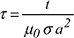mit μ0=Induktionskonstante, σ=elektrische Leitfähigkeit, a=Radius der Sendespule und t der Zeit nach Abschalten des Stroms. Für frühe Zeiten (τ 1) bzw. späte Zeiten (τ > >1) lassen sich jedoch einfache Ausdrücke angeben: