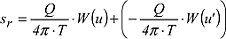 mit der Entnahmerate Q, beginnend zum Zeitpunkt t=0, und einer scheinbaren Injektion im selben Brunnen mit der Injektionsrate Q, beginnend zum Zeitpunkt des Pumpendes t′=0, deren Anstiegsbetrag s′ beträgt: