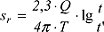 Zur Bestimmung von T kommt analog zum Verfahren nach Cooper und Jacob ein Geradlinien-Verfahren zum Einsatz. Auf halblogarithmischem Papier trägt man die residuelle Absenkung sr, die man in einer Meßstelle oder im Brunnen selbst mißt, gegen den Quotienten lg(t/t′) auf. Für große Werte von t und t′ ergibt sich eine logarithmische Gerade. Für eine logarithmische Dekade ist lg(t/t′) = 1 und