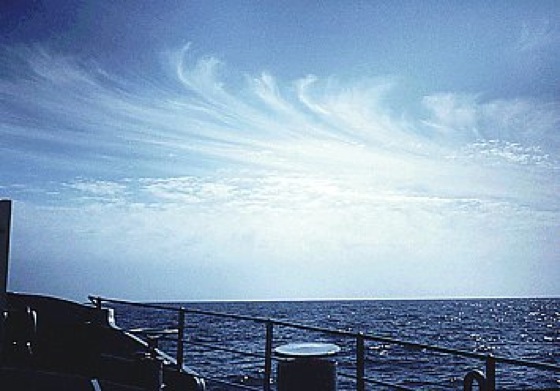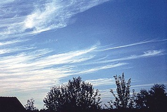 Wolkensymbole 24: Cirrus (oft in Banden) und Cirrostratus oder Cirrostratus allein, den Himmel fortschreitend überziehend, höher als 45º über den Horizont reichend, den Himmel jedoch nicht ganz bedeckend (CH6). Wolkensymbole 24: