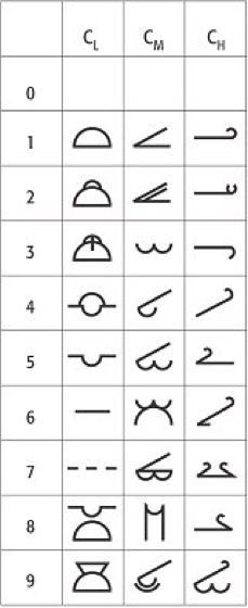 In der Spalte CH bedeutet: 1=Cirrus fibratus, auch uncinus (den Himmel nicht fortschreitend überziehend), 2=Cirrus spissatus oder Cirrus castellanus oder floccus, 3=Cirrus spissatus cumulogenitus, 4=Cirrus uncinus oder fibratus oder beide (den Himmel fortschreitend überziehend), 5=Cirrus (oft in Banden) und Cirrostratus oder Cirrostratus allein (den Himmel fortschreitend überziehend, jedoch nicht höher als 45º über den Horizont), 6=Cirrus (oft in Banden) und Cirrostratus oder Cirrostratus allein (den Himmel fortschreitend überziehend, höher als 45º über den Horizont reichend, den Himmel jedoch nicht ganz bedeckend),7=Cirrostratus-Schleier (den Himmel ganz überdeckend), 8=Cirrostratus (den Himmel nicht fortschreitend überziehend und ihn nicht ganz bedeckend), 9=Cirrocumulus allein oder Cirrocumulus, der gleichzeitig mit Cirrostratus und/oder Cirrus auftritt, jedoch ist Cirrocumulus vorherrschend. Wolkensymbole (Tab):