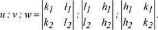 Umgekehrt kann man zu je zwei Flächen mit den Millerschen Indizes (h1,k1,l1) und (h2,k2,l2) das Symbol der gemeinsamen Zone [u,v,w] nach der folgenden Vorschrift finden: