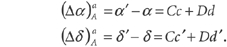 Hierin bezeichnen C und D die Besselschen Aberrations-Tagzahlen. Die Sternenkonstanten, c, c ′, d, d ′ lauten: c=cos α sec δ, c ′=tan ε cos δ - sin α sin δ, d=sin α sec δ, d ′=cos α sin δ (ε : Ekliptikschiefe).