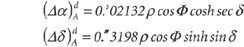 Eine häufig benutzte Näherung für die Korrekturen von α und δ aufgrund der jährlichen Aberration lautet: