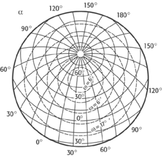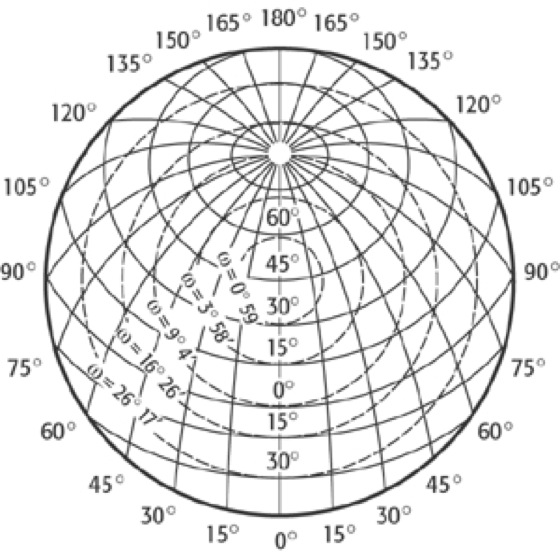 Äquideformaten 1Äquideformaten 1: Äquideformaten der maximalen Winkelverzerrung für den äquidistanten Azimutalentwurf.