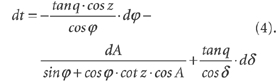 Durch Umstellen von (1) und (2) erhält man Differentialformeln zur Zeitbestimmung (Längenbestimmung)