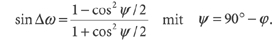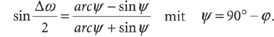 f) Breusings vermittelnder Entwurf. Da die stereographische Projektion an den Rändern eine starke Flächenverzerrung, der flächentreue Lambert'sche Azimutalentwurf dagegen eine starke Winkelverzerrung aufweist, schlug A. Breusing (1818-1892) als Mischkarte einen Entwurf vor, dessen Halbmessergesetz als geometrisches Mittel dieser beiden Entwürfe gebildet wird.