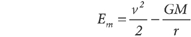 Bahnmechanik, E orbital mechanics, als Energiebilanz für einen Satelliten mit Einheitsmasse (m=1) gilt, dass die gesamte mechanische Energie Em konstant bleibt. Sie setzt sich aus der kinetischen (erster Term) und der potentiellen Energie der Satellitenbewegung zusammen, was im Energieintegral zum Ausdruck kommt: