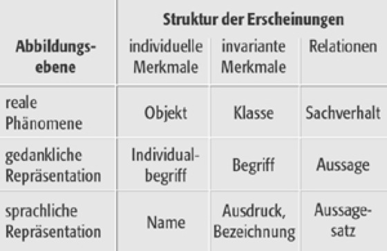 Bedeutung, Zeichenbedeutung, Signifikat, Designat, Bezeichnetes, E significance, in der Semiotik (Zeichentheorie) das Objekt, die Klasse, der Sachverhalt oder deren Merkmale, Eigenschaften, Beziehungen usw., die durch Zeichen repräsentiert (abgebildet) werden. Bei künstlichen Zeichensystemen werden Zeichen nicht ausschließlich durch reale Phänomene bezeichnet, sondern entsprechend durch deren gedankliche Repräsentationen in Form von Individualbegriffen, Begriffen und Aussagen oder durch sprachliche Bezeichnungen als Namen, Ausdruck (Wort) und Satz (Aussagesatz) (Tab.).