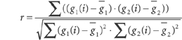 als Kriteriumsgröße genutzt. Wobei g1(i) bzw. g2(i) die Intensitätswerte und [gamma ueberstrich]1 bzw. [gamma ueberstrich]2 die Mittel der Intensitätswerte im Bild und Referenzbild sind. Die theoretisch erreichbaren Extremwerte von r sind 1 und 0 bei einer funktionalen Abhängigkeit bzw. Unabhängigkeit der Intensitätsverteilungen und -1 für eine funktionale Abhängigkeit zwischen einem Positiv- und Negativbild. Durch numerische Approximation der Korrelationsfunktion ist eine Genauigkeit der Zuordnung im Subpixelbereich zu erzielen, erfordert aber gute Näherungswerte für die Lage der zuzuordnenden Punkte oder Flächen. Die Bildkorrelation wird meist zur automatischen Bestimmung der Bildkoordinaten der Rahmenmarken in digitalisierten Messbildern genutzt. Als Referenzbild dient dabei ein idealisiertes Musterbild der Marke (Abb.).