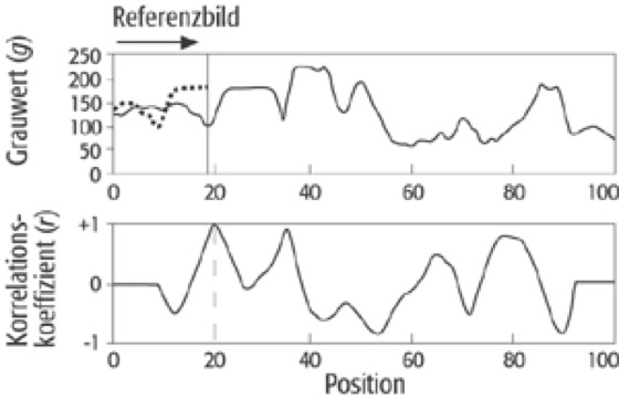 Bildkorrelation:Bildkorrelation: Korrelationsfunktion in einer Bildgeraden.