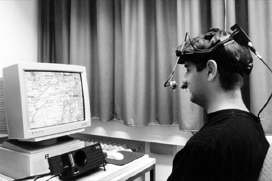 Blickbewegungsregistrierung, E eye tracking, eine in der experimentellen Kartographie etablierte Methode zur Untersuchung visuell-kognitiver Prozesse der Kartennutzung. Ihre Anwendung beruht auf der Annahme, dass zentrale Vorgänge der Informationsverarbeitung bei visuell dargebotenen Medien an unmittelbar extern verfügbare Informationen gebunden sind, d. h. die Aufeinanderfolge von Augenbewegungen kein willkürlicher Prozess ist. Die Auswahl der Fixationsorte innerhalb einer Karte steht in direktem Zusammenhang mit der Aufmerksamkeitsverteilung (vgl. Aufmerksamkeit). An jedem Fixationsort werden Reize aus der Gesichtsfeldperipherie vorverarbeitet, die dann gezielte sakkadische Sprünge zu solchen Objekten in der Reizvorlage ermöglichen, die den höchsten Informationsgehalt haben und deshalb als bedeutend eingestuft werden. Daraus folgt, dass jedes Mal, wenn im Denkprozess mit der Karte eine visuelle Information benötigt wird, sich der Blick auf diese Information richtet, und dass anschließend die gefundene Information im Denkprozess verarbeitet wird.