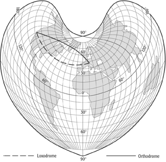 Bonne's unechter Kegelentwurf, E Bonne's pseudo conic projection, das Ergebnis eines geometrischen Prozesses, nach dem die Oberfläche der Erde flächentreu in einer herzförmig begrenzten Fläche dargestellt wird (Abb.). Der Entwurf wurde 1752 von R. Bonne (1727-1795) angegeben und im 19. Jh. häufig angewendet. Die Konstruktion beruht auf folgenden Forderungen: 1. der Grundmeridian durch den Mittelpunkt des abzubildenden Gebietes wird geradlinig abgebildet, 2. die Breitenunterschiede werden auf dem Grundmeridian unverzerrt abgetragen, 3. das Bild des Grundparallelkreises ist ein Kreis mit dem Radius ρ0=Rcot φ0 (Kegelentwürfe), 4. die Bilder der Parallelkreise sind konzentrische Kreise, die die gleichen Abstände voneinander haben wie auf der Kugel, 5. die Parallelkreise sind längentreu geteilt und 6. die Bilder der Meridiane werden durch die vorstehende Forderung Kurven höherer Ordnung.