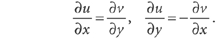 und den Real- und Imaginärteilen u (x,y), v (x,y) der komplexwertigen Funktion f(z)=u(x,y) + iv(x,y) lauten die Cauchy-Riemann'schen Differentialgleichungen:
