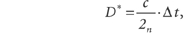 wobei Δt=Impulslaufzeit, c=Ausbreitungsgeschwindigkeit in der Atmosphäre und n der Brechungsindex der Atmosphäre sind. Die vorläufige Distanz D* ergibt sich beim Phasenvergleichsverfahren zu