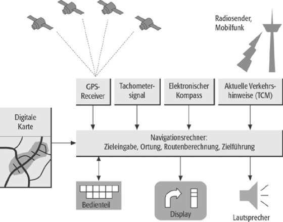 Fahrzeugnavigationssystem 2:Fahrzeugnavigationssystem 2: Zusammenwirken der einzelnen Komponenten.