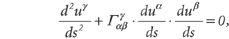 wobei d/ds die Ableitung nach der Bogenlänge s bezeichnet; entsprechend der Einstein'schen Summationskonvention wird über gleiche Indizes α, β, γ ε{1,2} summiert. γγα β sind die Christoffelsymbole.