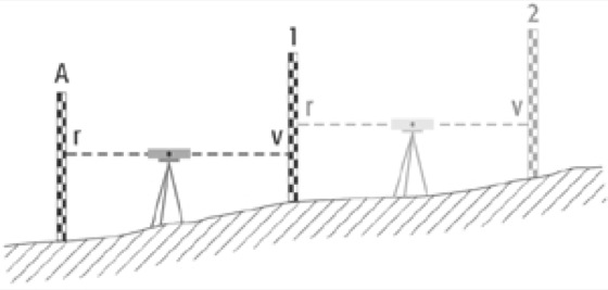 Der Höhenunterschied Δh ergibt sich aus der Differenz der Ablesungen an der Nivellierlatte im Rückblick (r) und im Vorblick (v) zu: δh=r - v. Das Nivellierprinzip kann den Anforderungen der Aufgabenstellung entsprechend variiert werden, sodass verschiedene Arten des geometrischen Nivellements (z. B. Liniennivellement, Flächennivellement) zu unterscheiden sind.