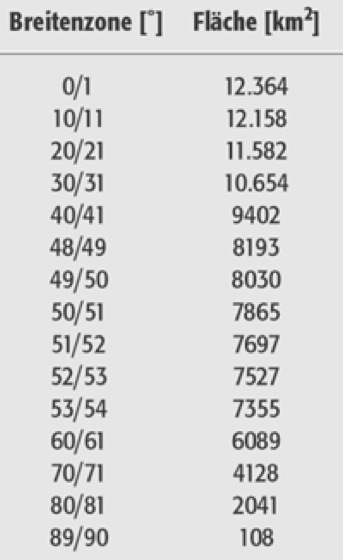 Gradfeld (Tab.):Gradfeld (Tab.): Fläche eines Gradfeldes in Quadratkilometern.