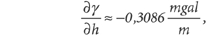 unter der Annahme einer ebenen unendlich ausgedehnten Topographie (Bouguerplatte), einem mittleren vertikalen Normalschweregradienten von:
