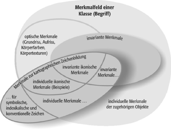 Invariantenbildung:Invariantenbildung: Kartographische Zeichen auf der Basis invarianter und optischer Merkmale einer Klasse (Begriffs).